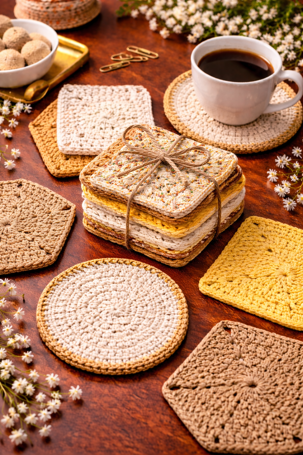 Crochella Luxe Crochet Coasters – Handcrafted Table Elegance