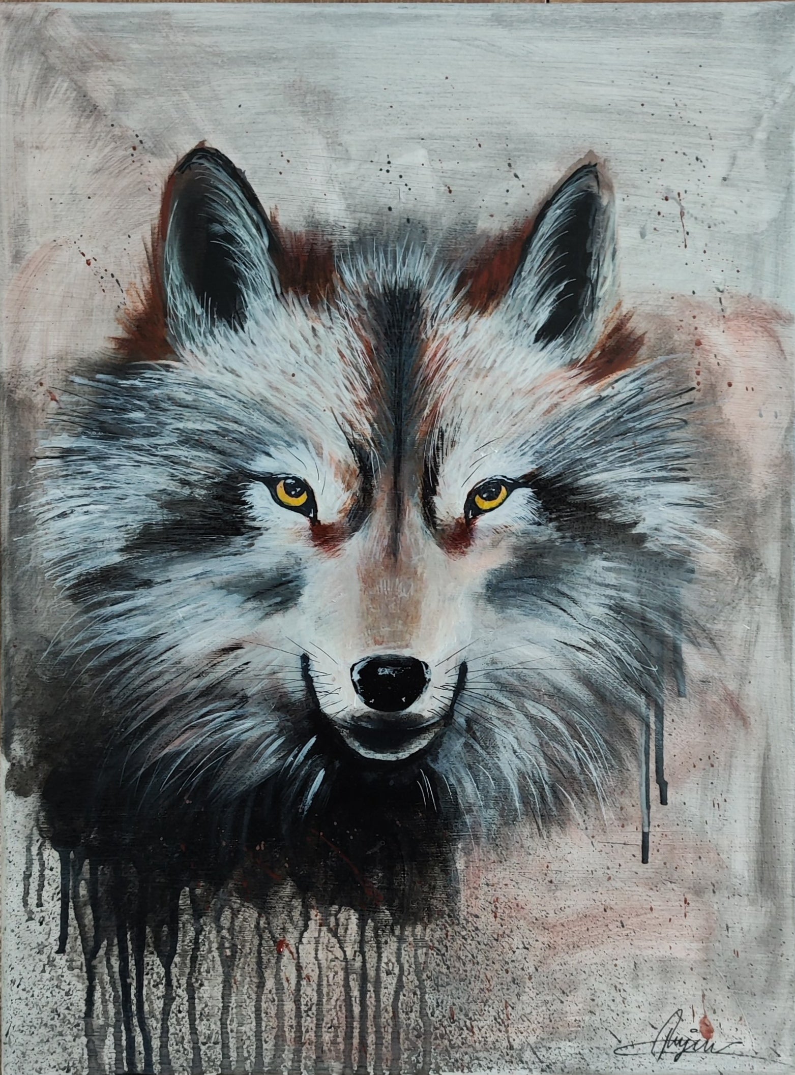 "Luminous Sentinel" is a striking original acrylic painting that captures the fierce yet wise essence of the wolf. Rendered in a palette of black, white, and grey, with intricate brown accents adding depth, this artwork draws the viewer into the piercing yellow eyes of the wolf—symbolizing strength, intuition, and resilience. The background features a subtle blend of smudged gray and brown tones, designed to enhance the wolf’s presence without distraction. This one-of-a-kind painting embodies the untamed beauty of nature, making it a perfect statement piece for any art lover or wildlife enthusiast.