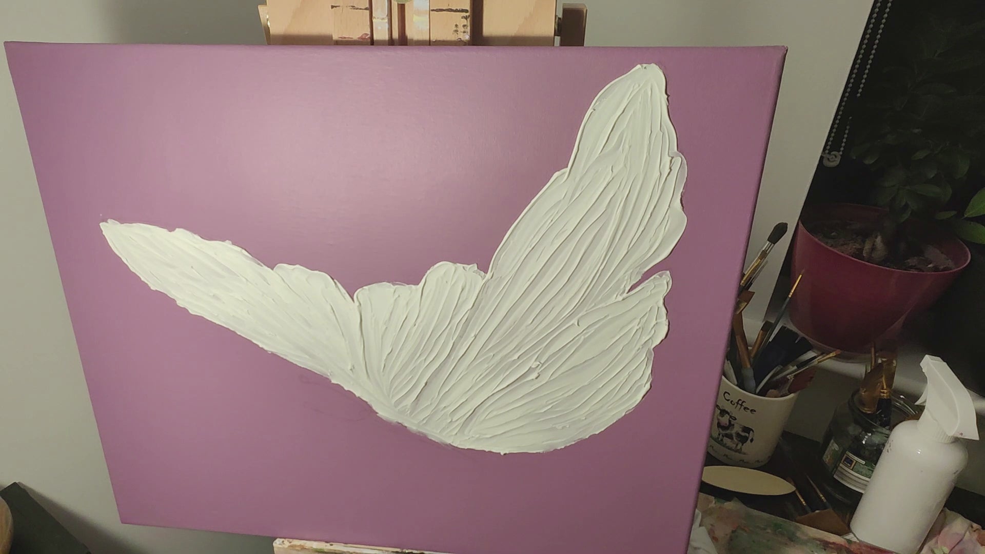 The artist’s skillful use of acrylic paints brings the intricate details of the butterfly’s wings to life, blending soft hues to create depth and dimension. The rich palette of purples evokes a sense of elegance and grace, while subtle variations in color add layers of sophistication to the composition.